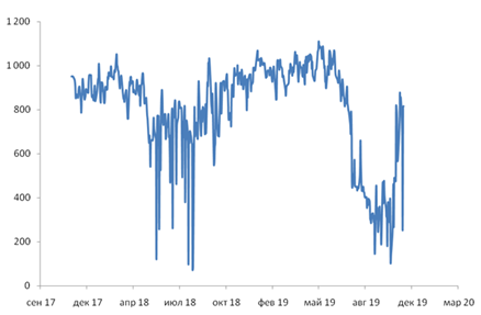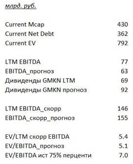 Конъюнктура на рынке слабо позитивная: цены на алюминий на 6% ниже чем LTM, цены на электроэнергию ниже на 11%, цены на палладий выше на 67% и на никель на 11%, чем в 2018 году. За счет изменений конъюнктуры (прогнозные дивиденды от Норникеля больше на 33%, чем в 2018 году, и на 11% выше, чем за 4кв18−3кв19), реализуемых инвестпроектов (влияющих положительно) и повышения ДПМ по Березовской ГРЭС (отрицательно) прогнозная скорректированная EBITDA на 6% выше LTM.