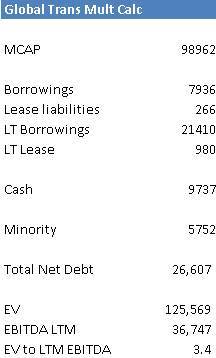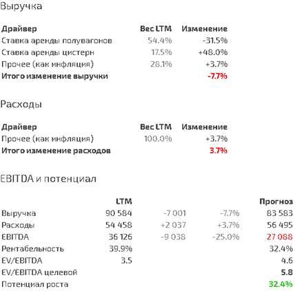 3. Недооценка по мультипликаторам: компания торгуется по мультипликатору EV/LTM EBITDA 3.45x при историческом мультипликаторе 5.8x (75% перцентиль); с учетом ухудшения конъюнктуры прогнозный мультипликатор составляет 4.6x, что все равно оставляет потенциал роста до целевого мультипликатора 5.8x около 32%