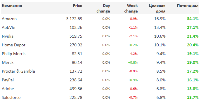 Показали худший performance: NVDA Nvidia -2.1%, PM Philip Morris -4.2%